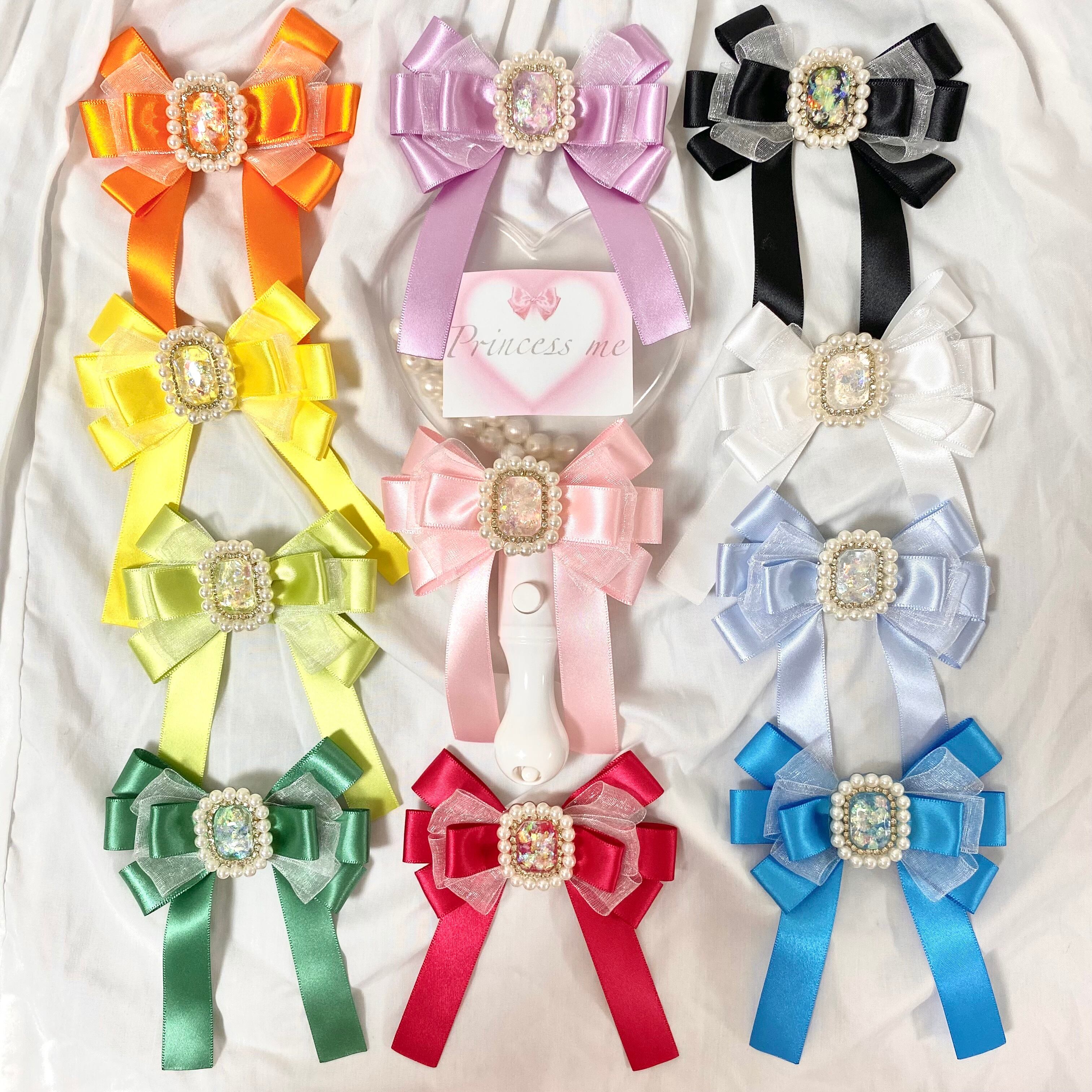 レッド、ライトブルー、ライトグリーン、ブルー、グリーン、パープル、ブラック、イエロー、ピンク、オレンジ、ホワイトのメンバーカラーが揃ったキンブレリボン/ペンライトリボンです♡
